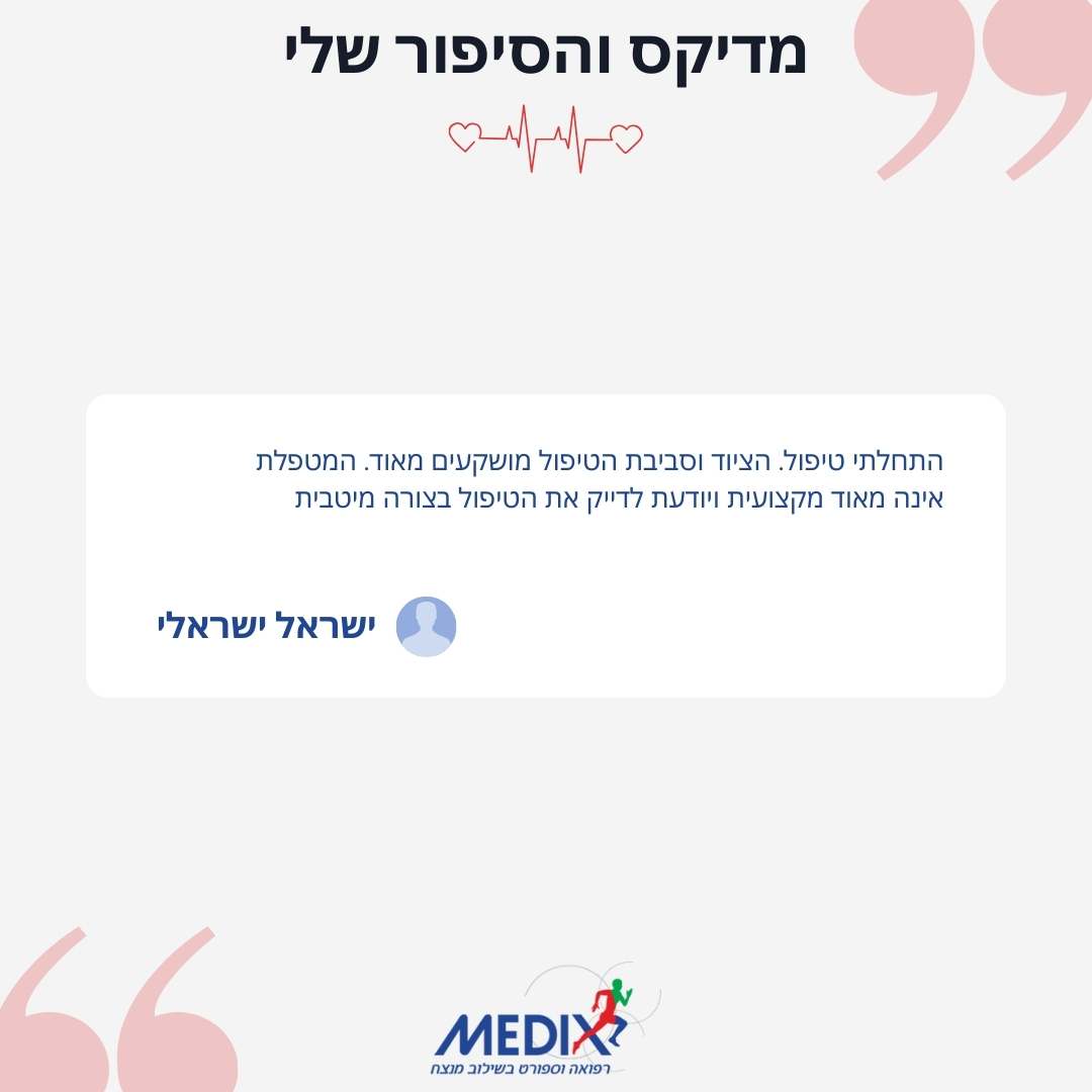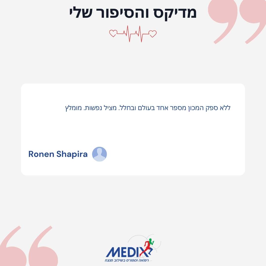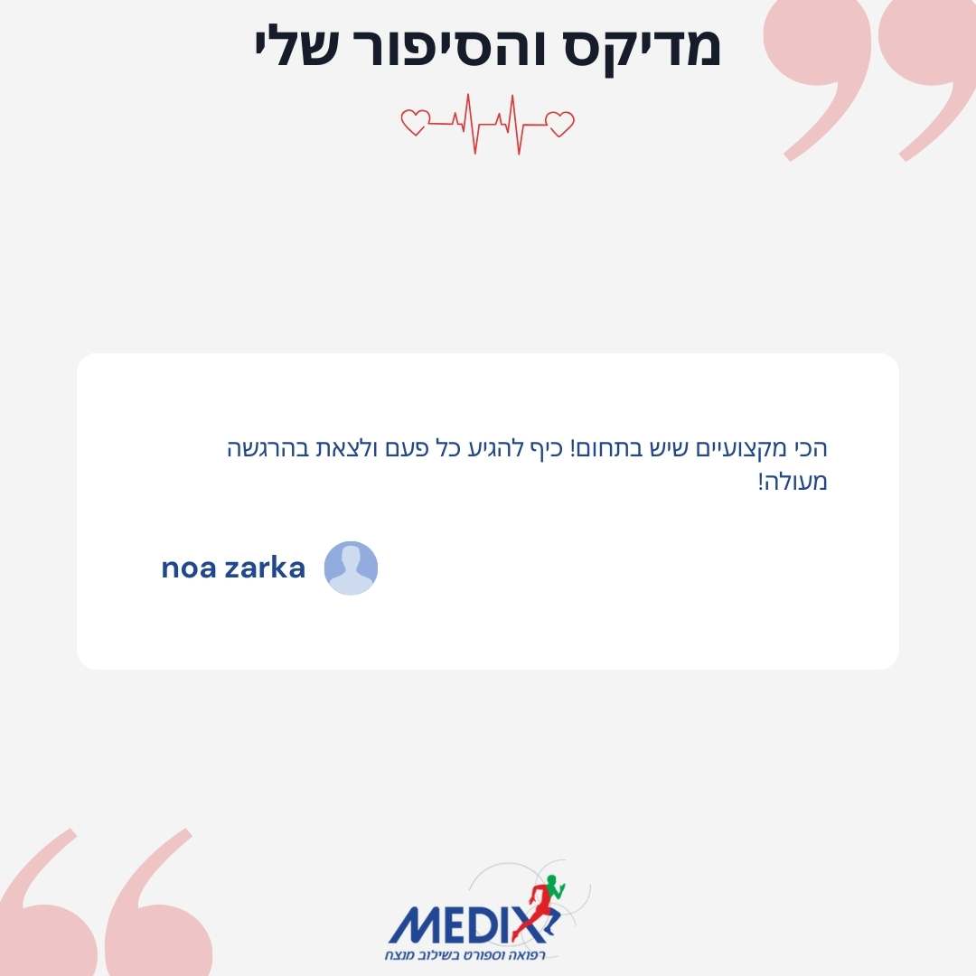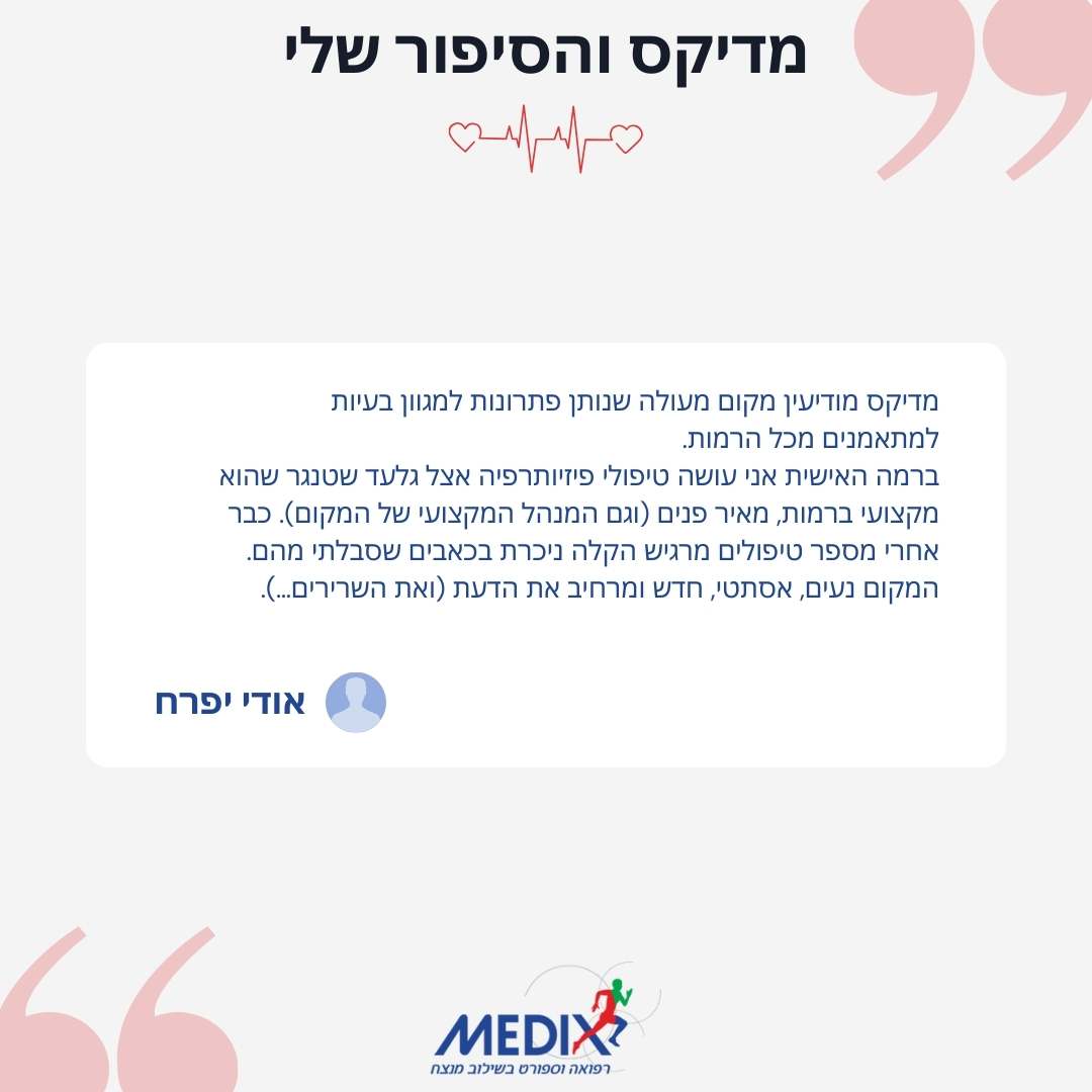 עם שני עשורים של ניסיון, מדיקס היא אחת הרשתות המובילות בתחום רפואת הספורט והפיזיותרפיה בישראל.