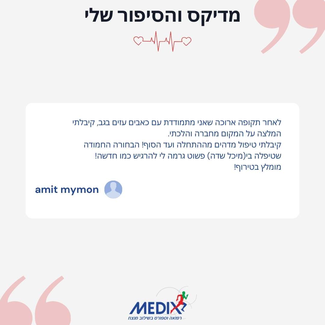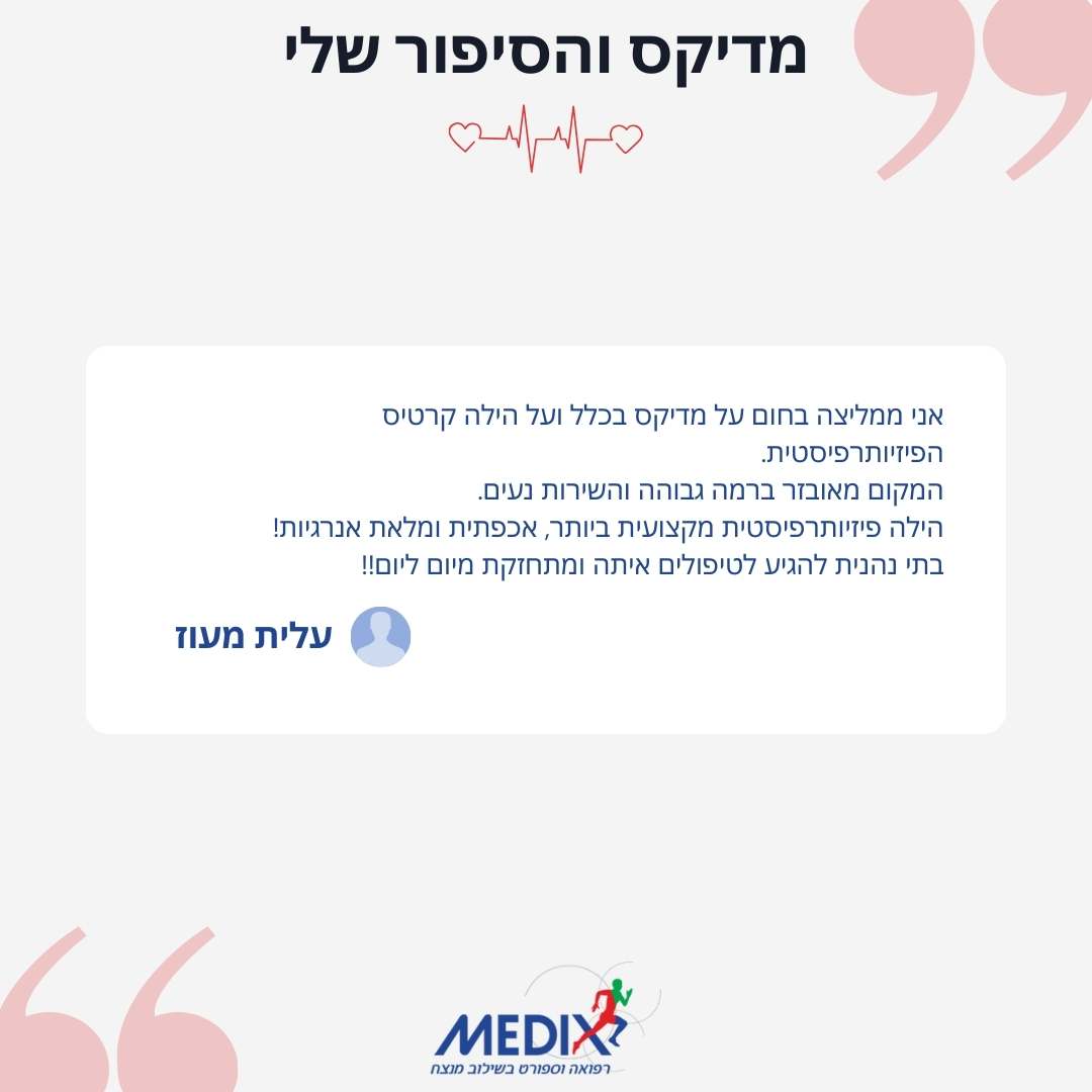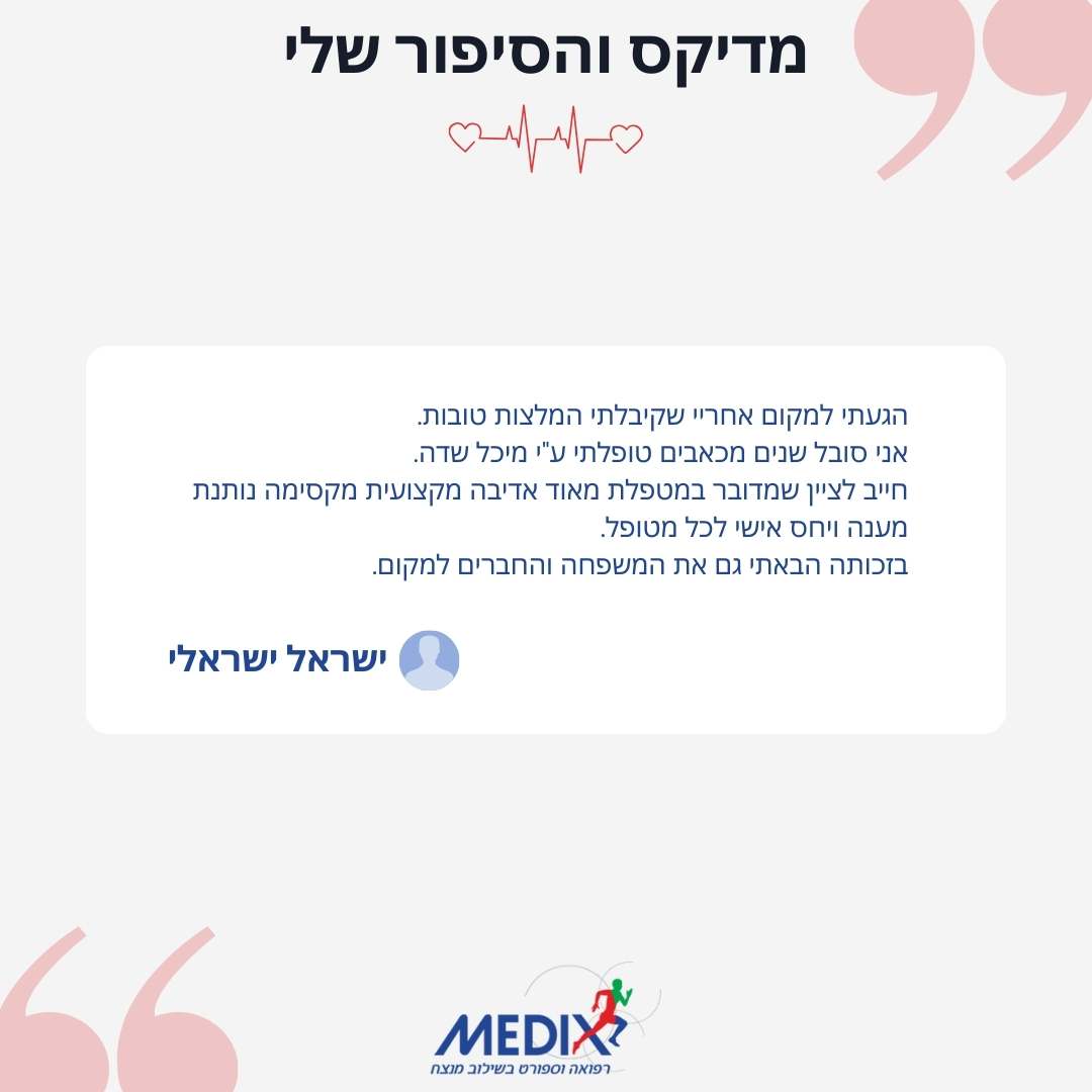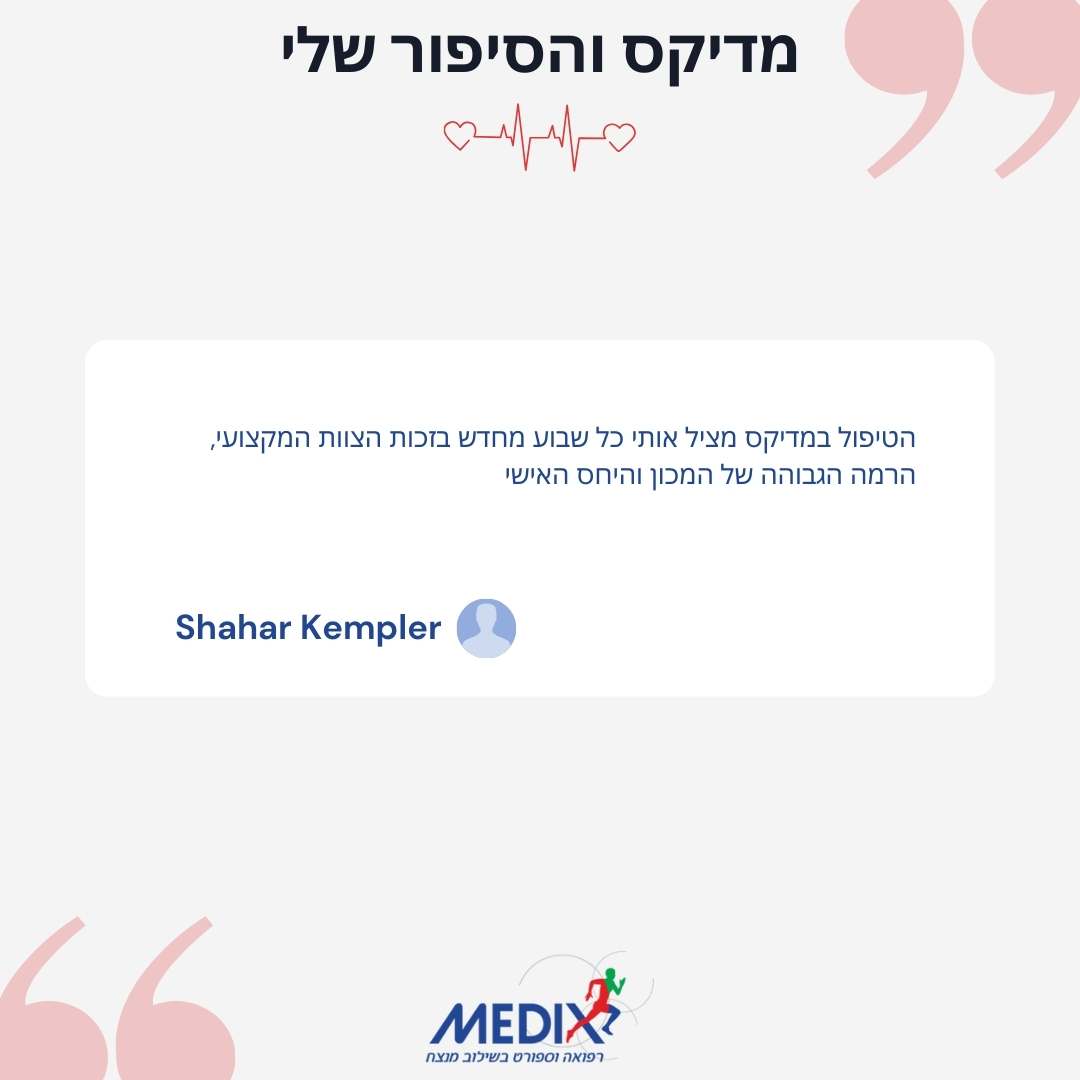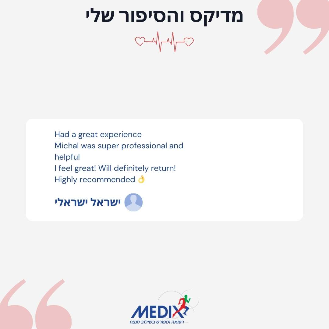 עם שני עשורים של ניסיון, מדיקס היא אחת הרשתות המובילות בתחום רפואת הספורט והפיזיותרפיה בישראל.