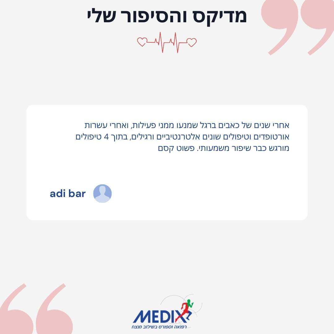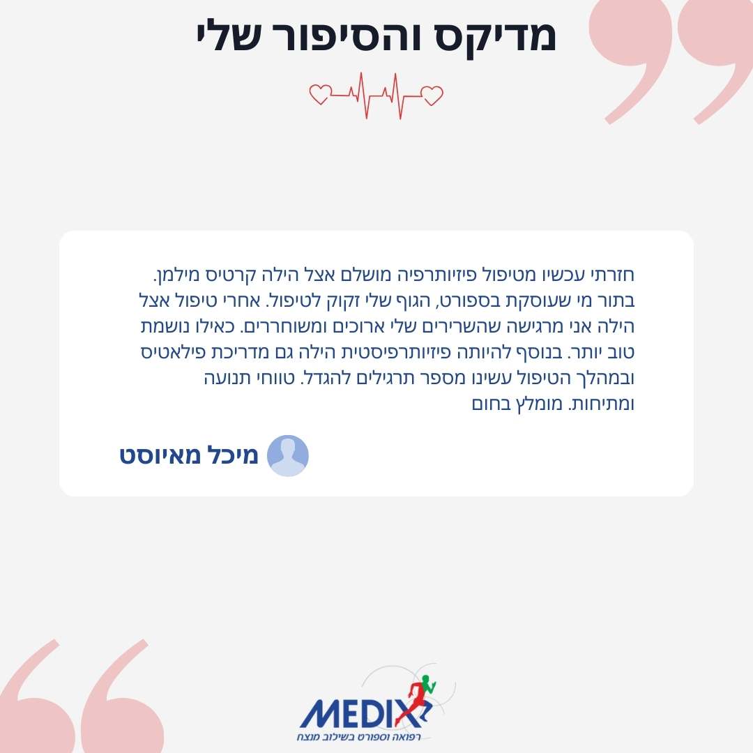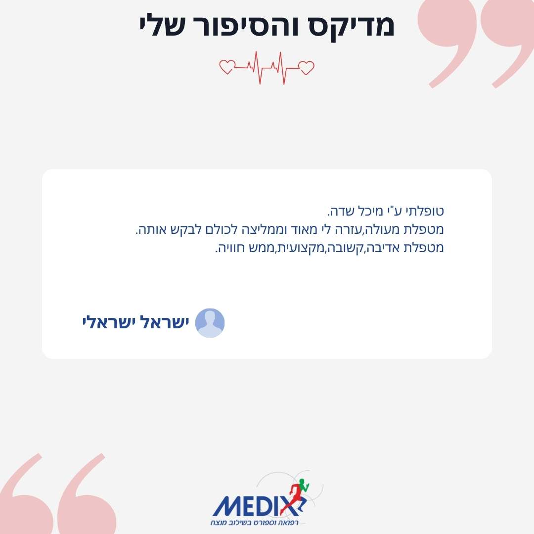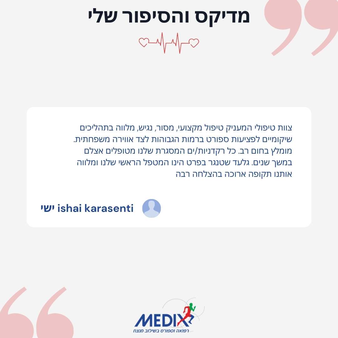 עם שני עשורים של ניסיון, מדיקס היא אחת הרשתות המובילות בתחום רפואת הספורט והפיזיותרפיה בישראל.
