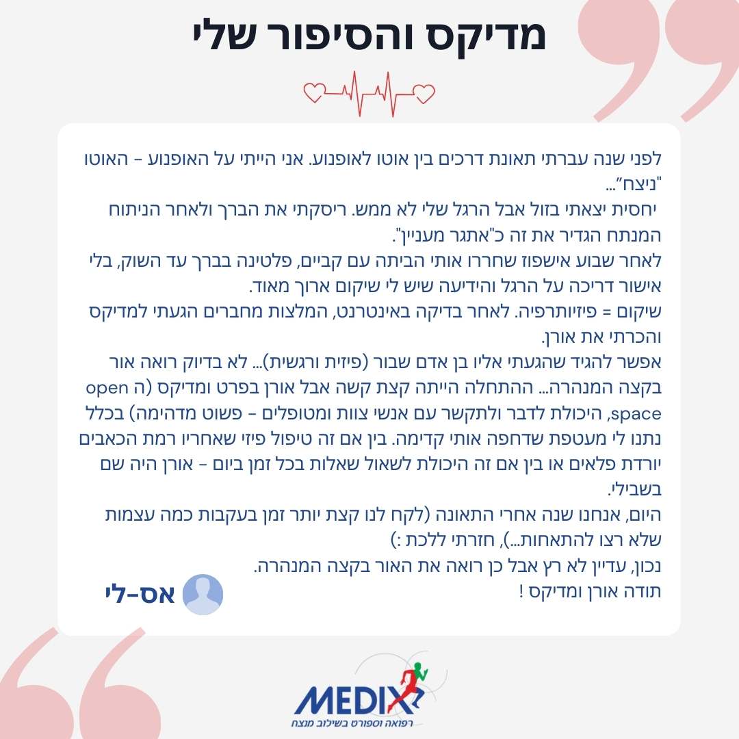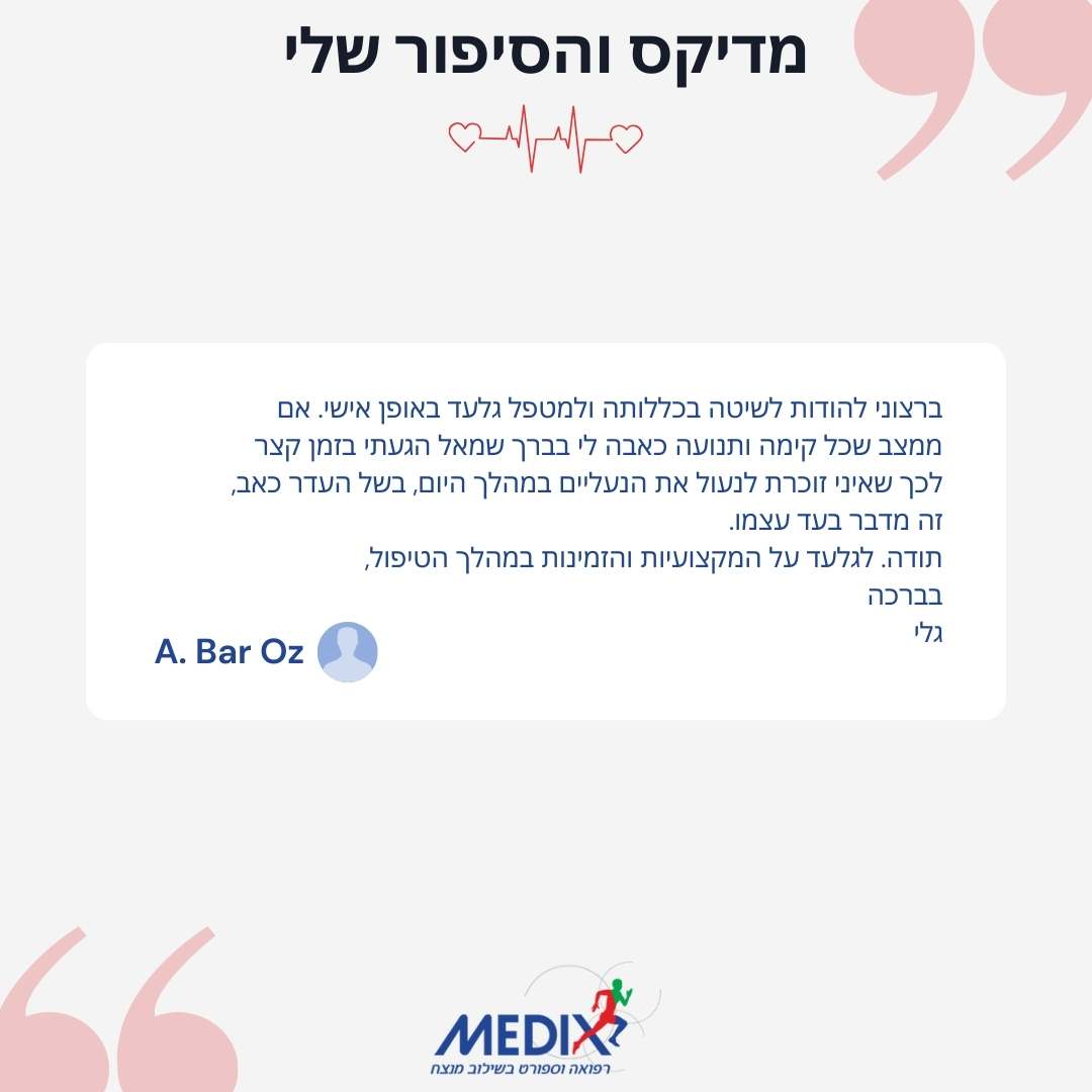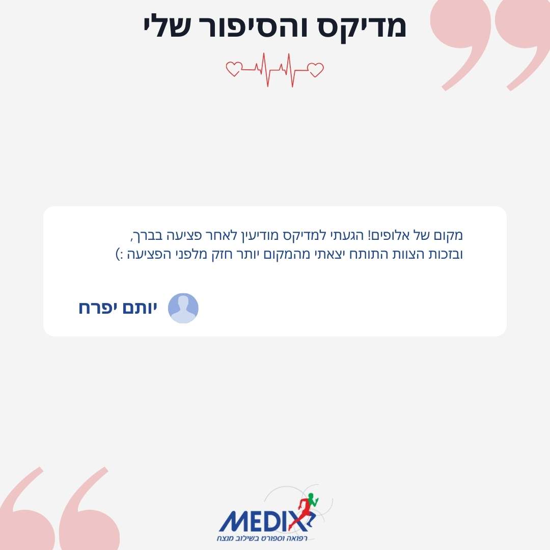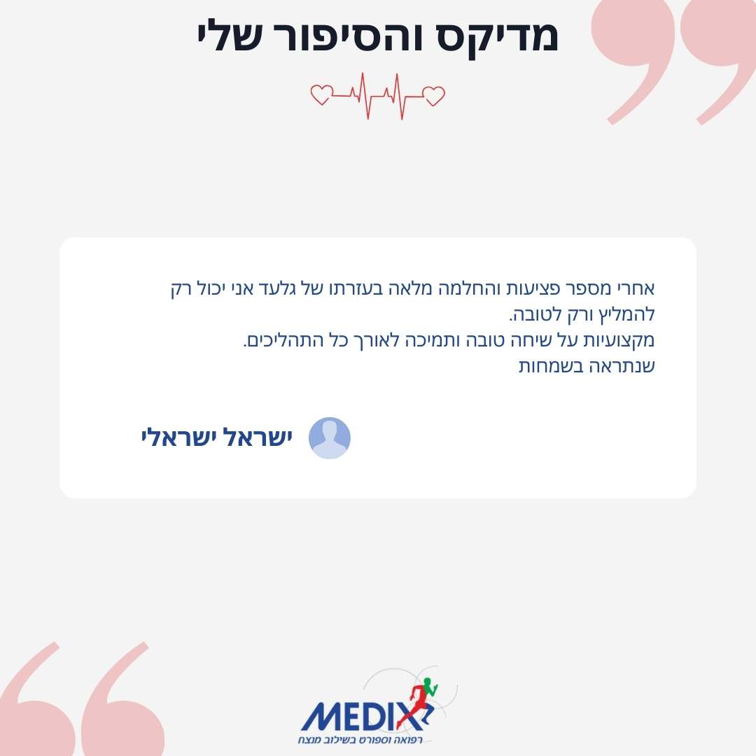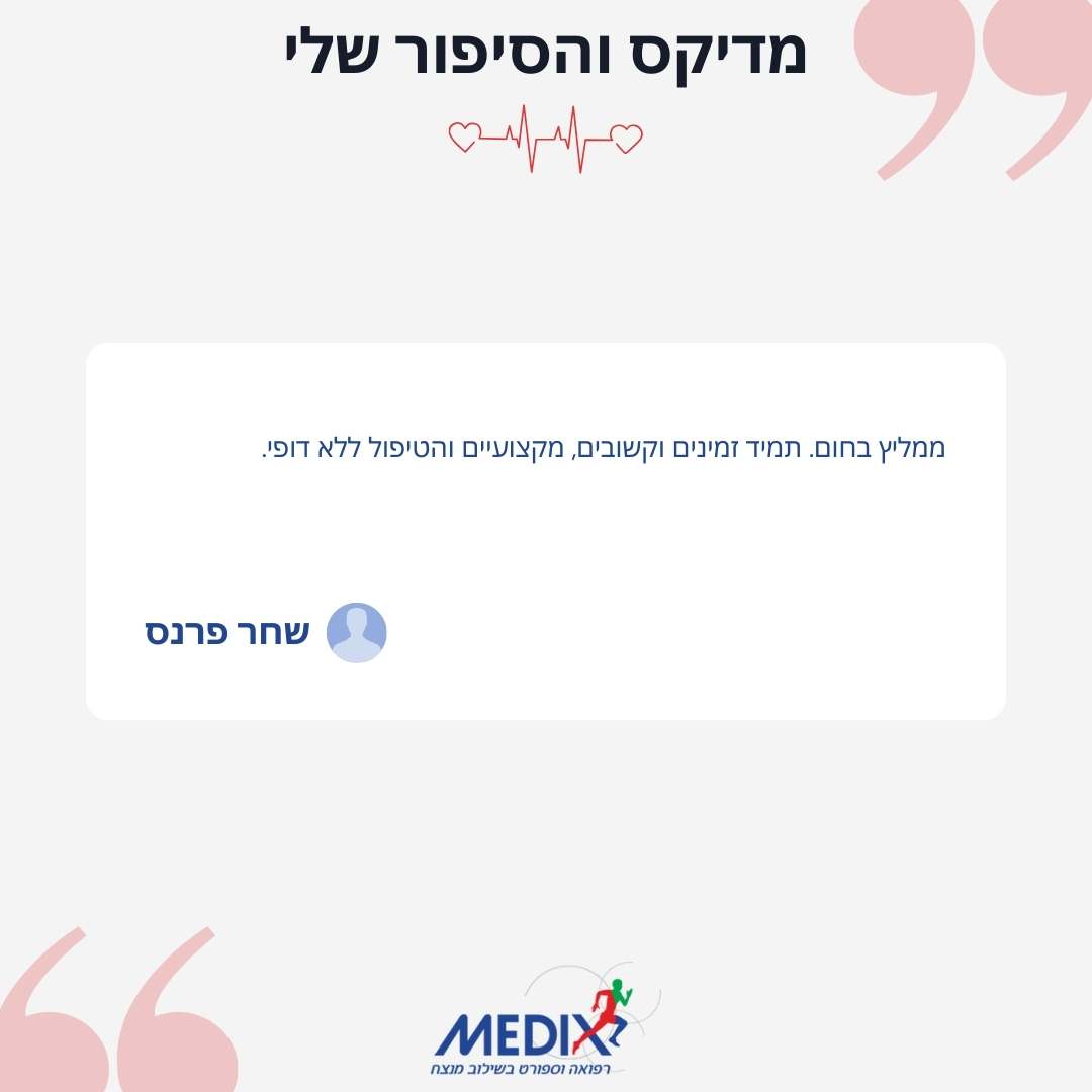 עם שני עשורים של ניסיון, מדיקס היא אחת הרשתות המובילות בתחום רפואת הספורט והפיזיותרפיה בישראל.