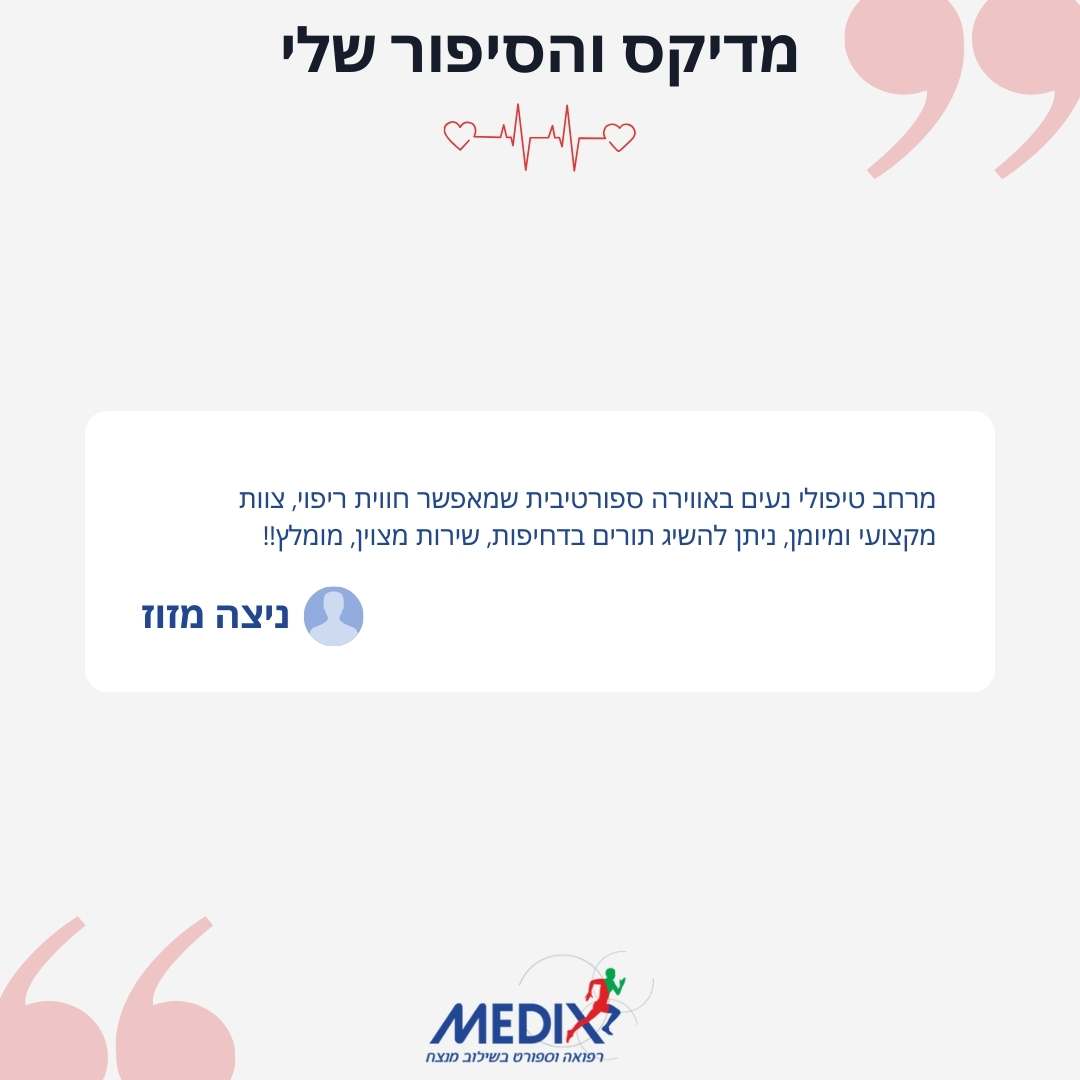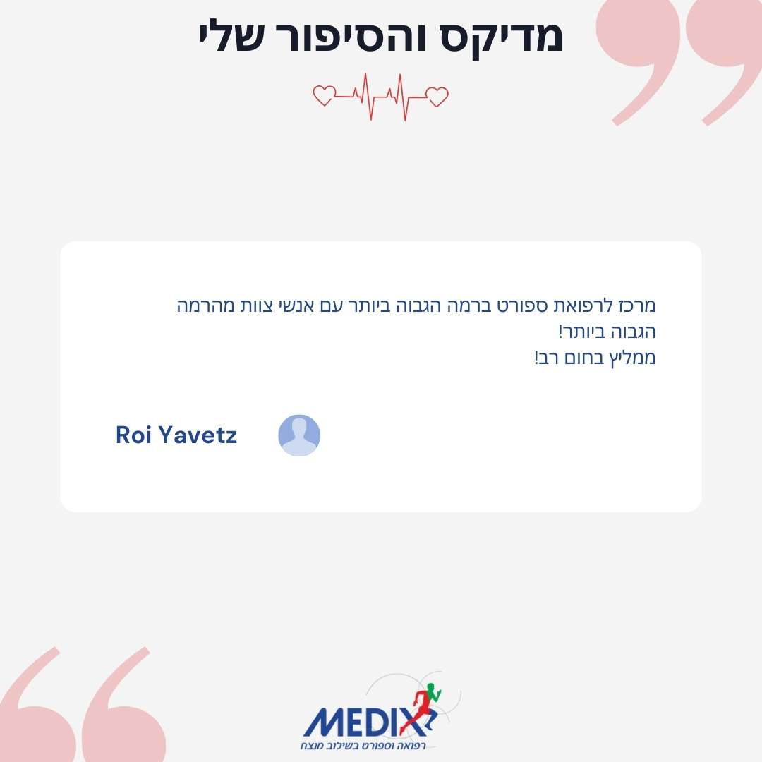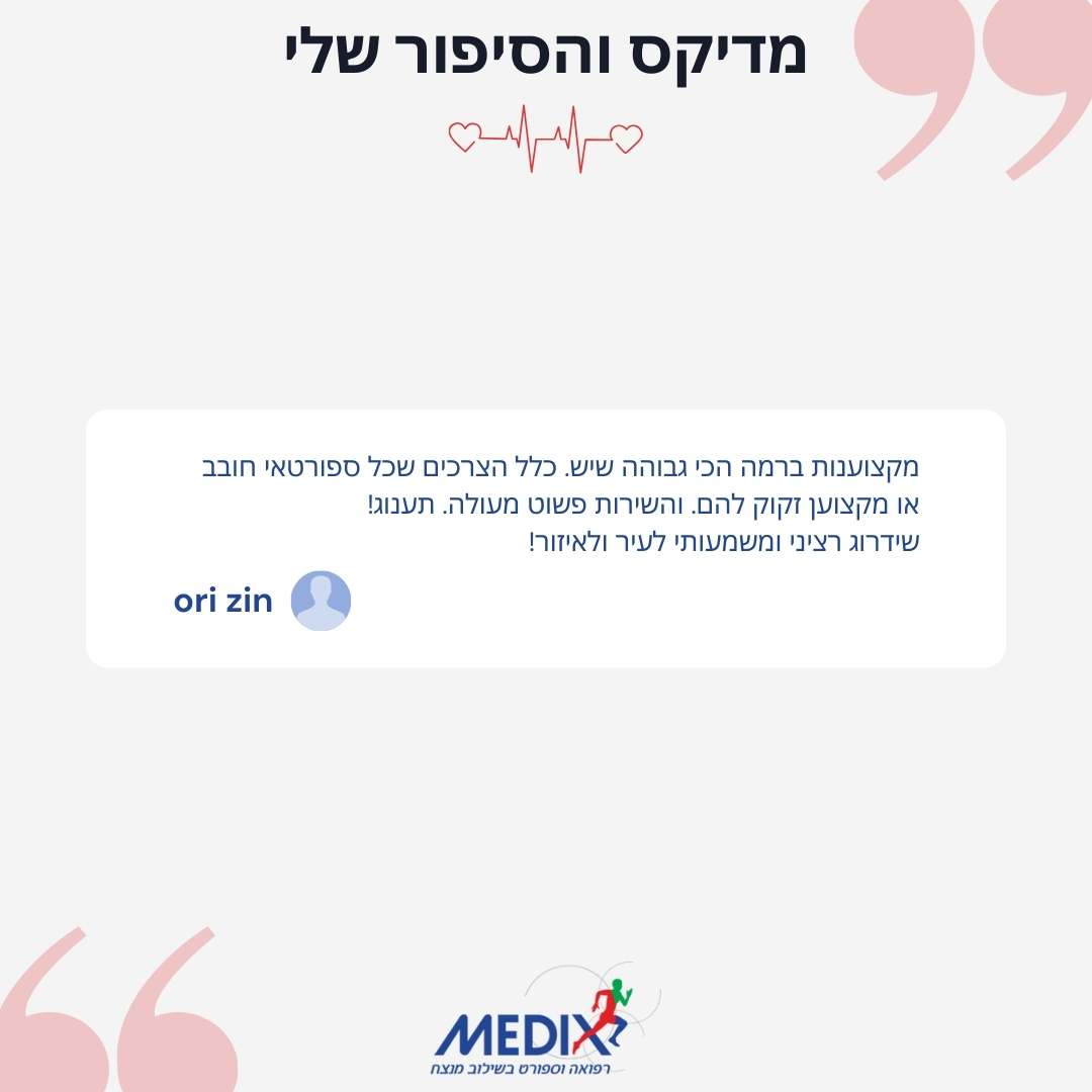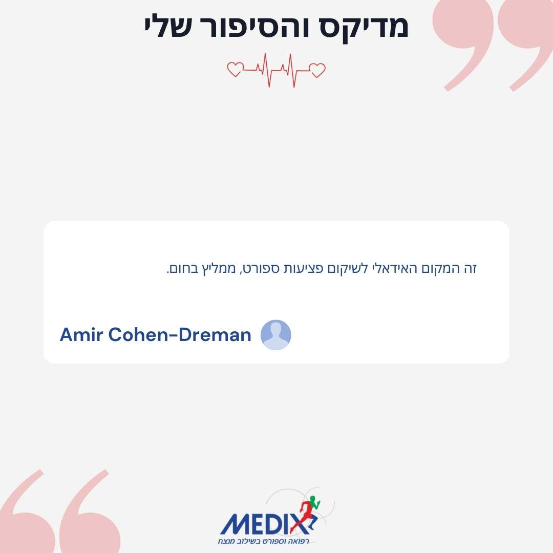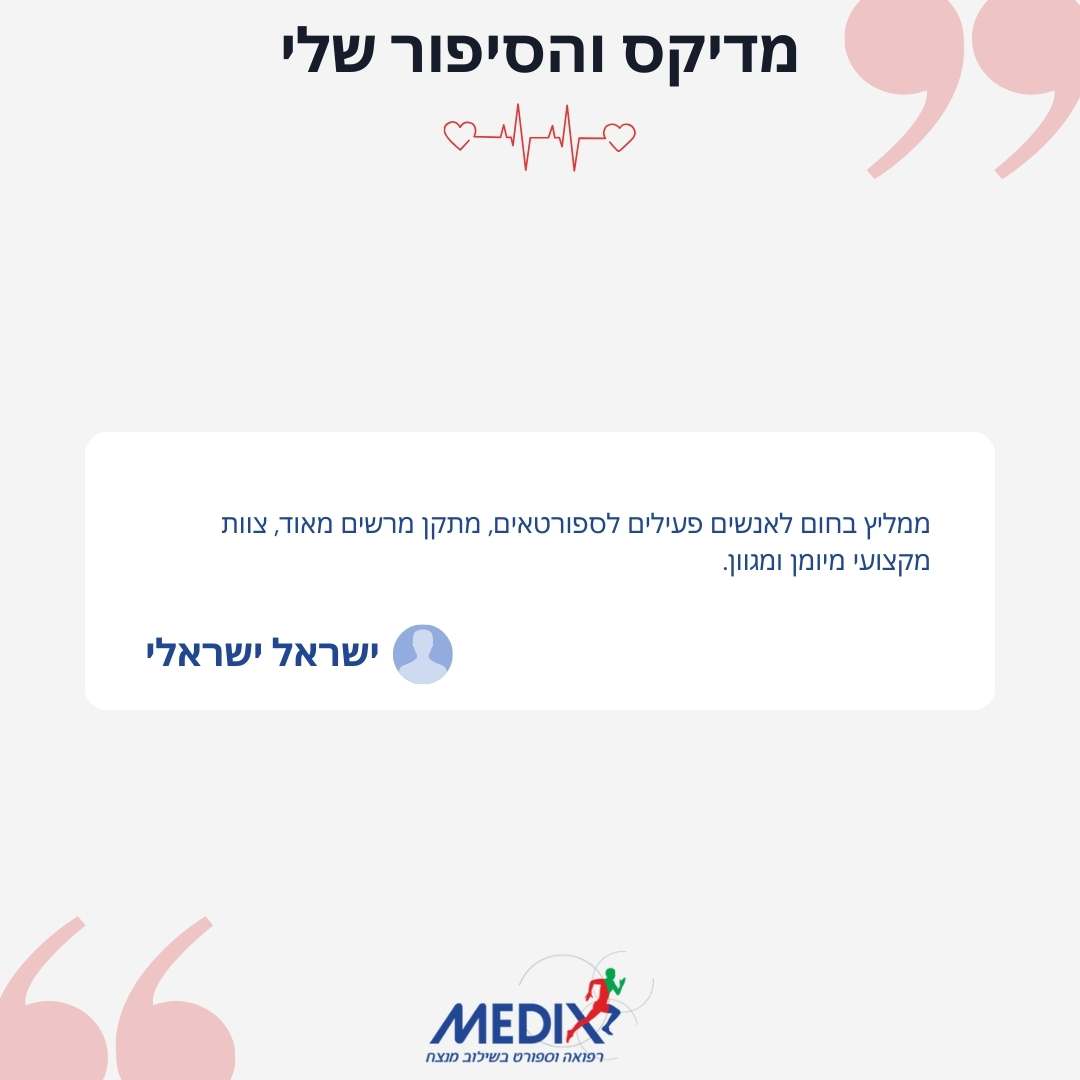 מדיקס מספקת שירותים לא רק לספורטאים מקצועיים, אלא גם לספורטאים חובבים, נוער ובוגרים, ומביאה את אותה רמה גבוהה של טיפול לכל אחד.