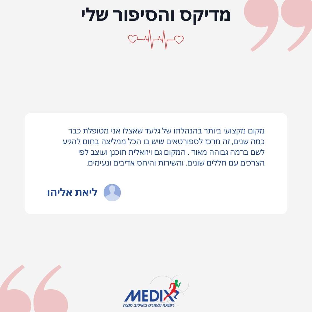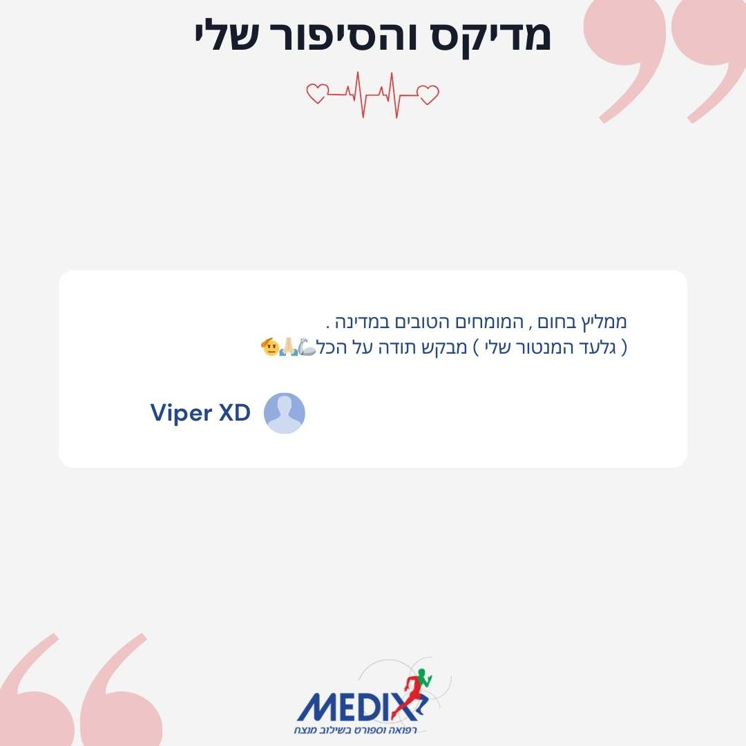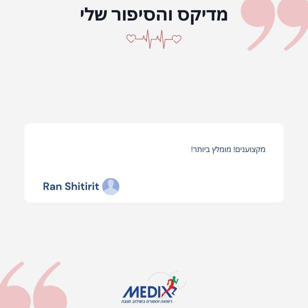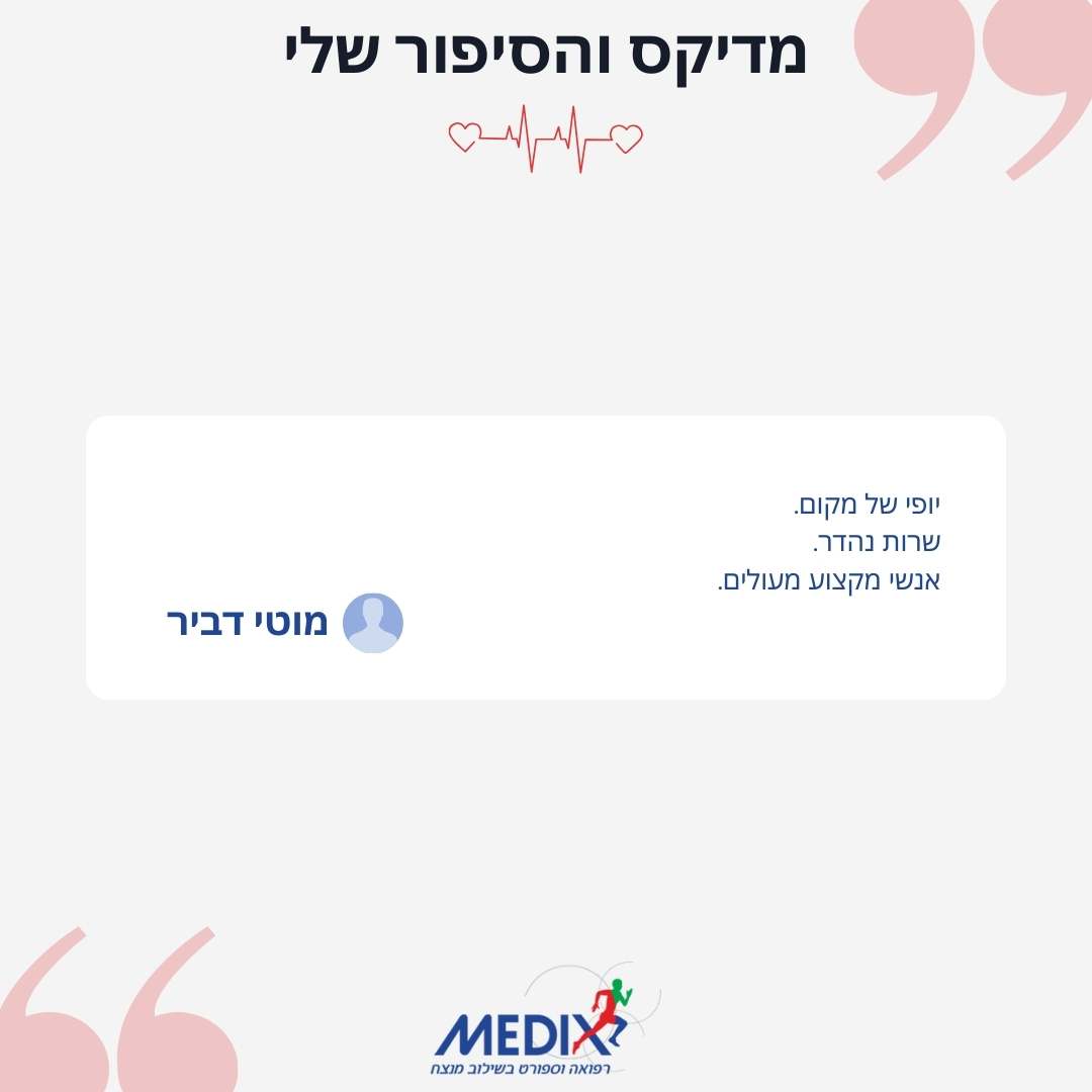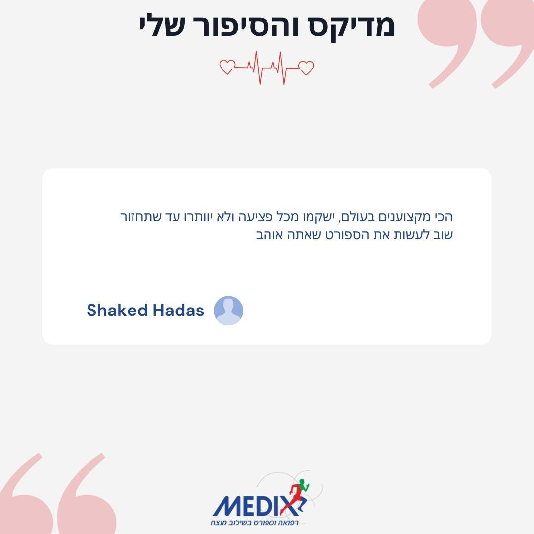 מדיקס מספקת שירותים לא רק לספורטאים מקצועיים, אלא גם לספורטאים חובבים, נוער ובוגרים, ומביאה את אותה רמה גבוהה של טיפול לכל אחד.