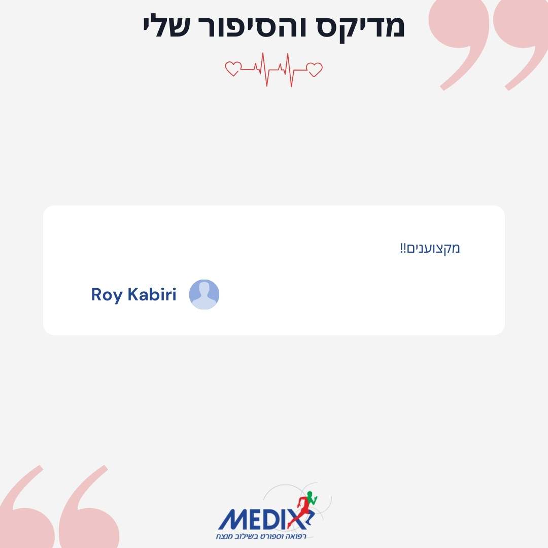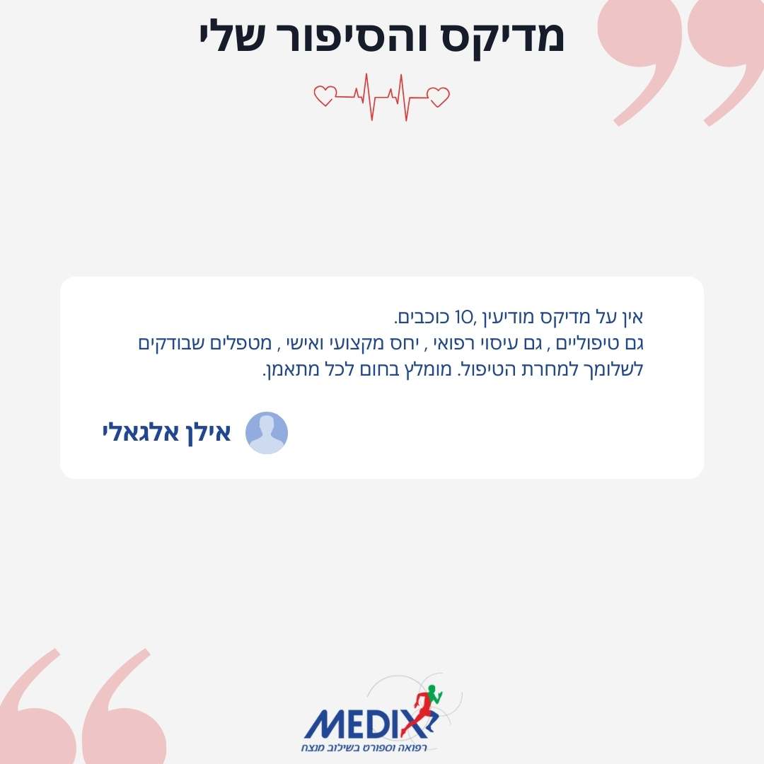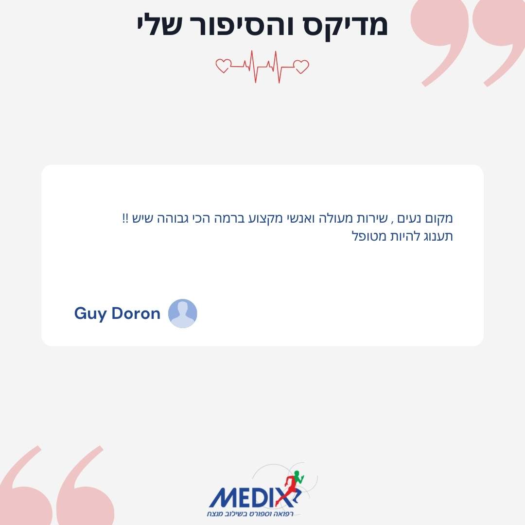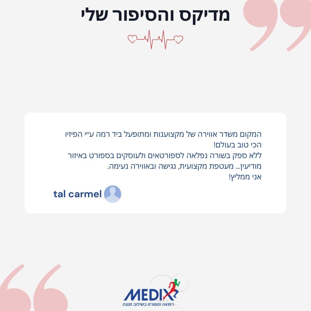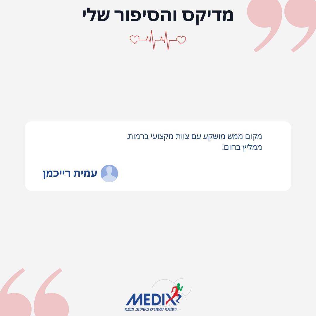 מדיקס מספקת שירותים לא רק לספורטאים מקצועיים, אלא גם לספורטאים חובבים, נוער ובוגרים, ומביאה את אותה רמה גבוהה של טיפול לכל אחד.