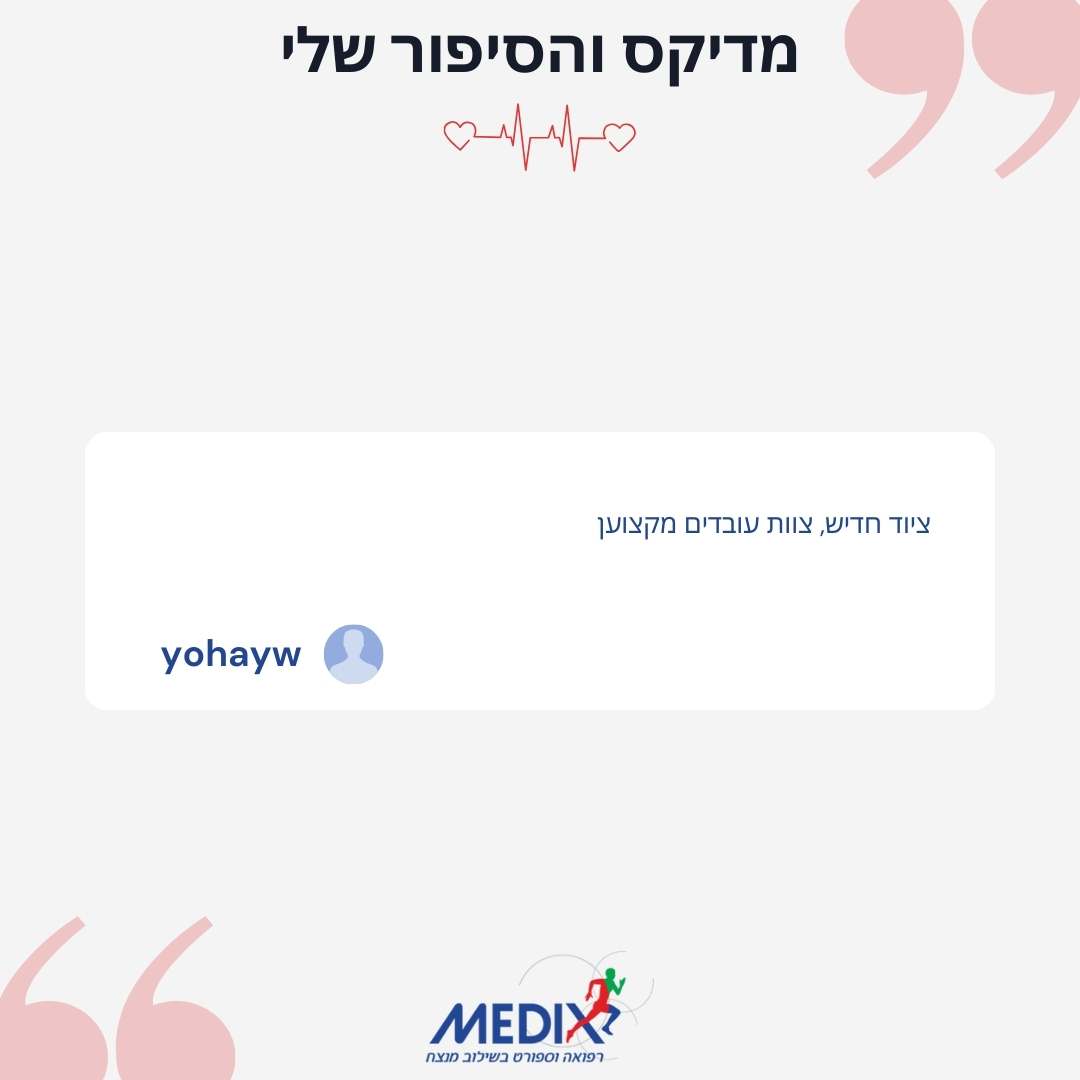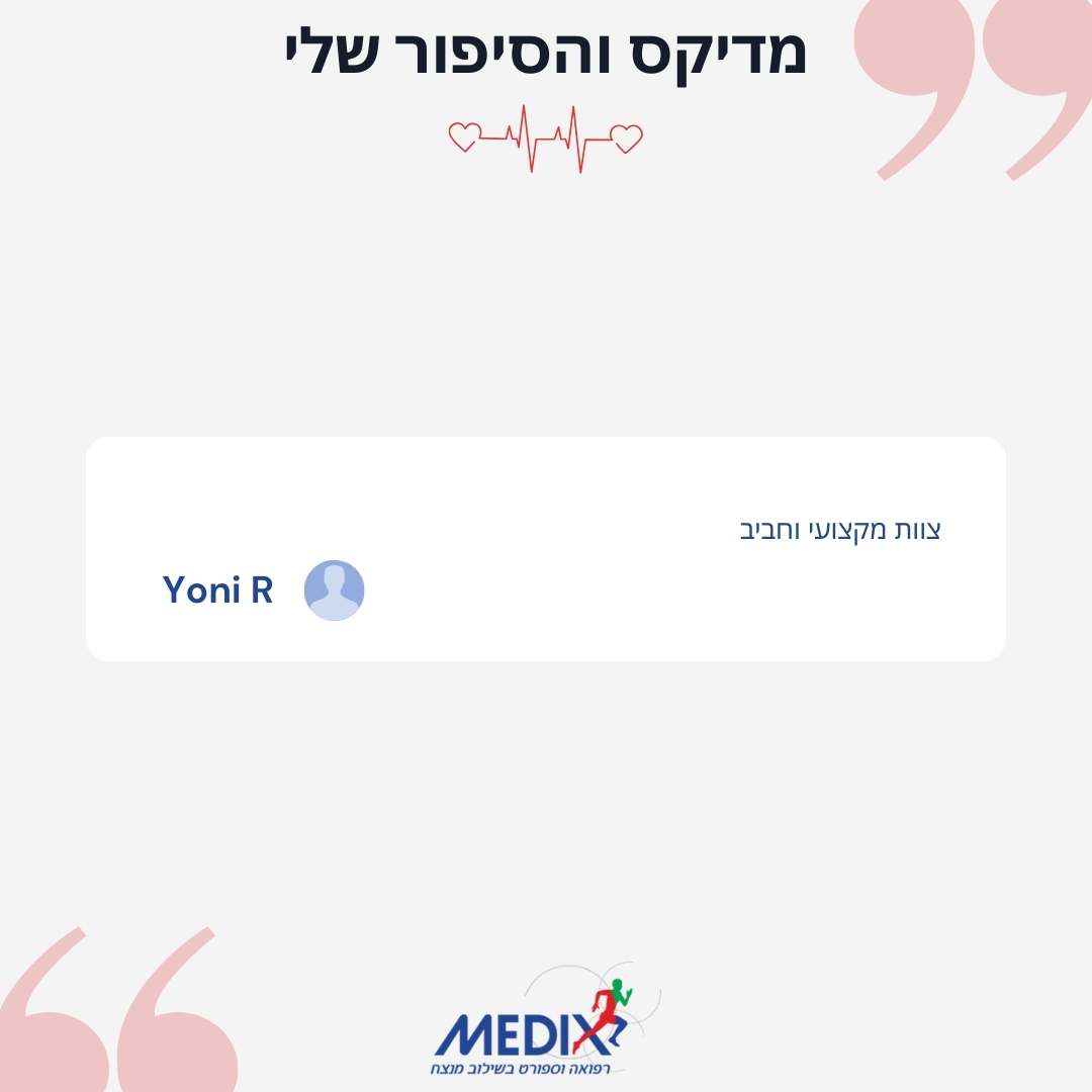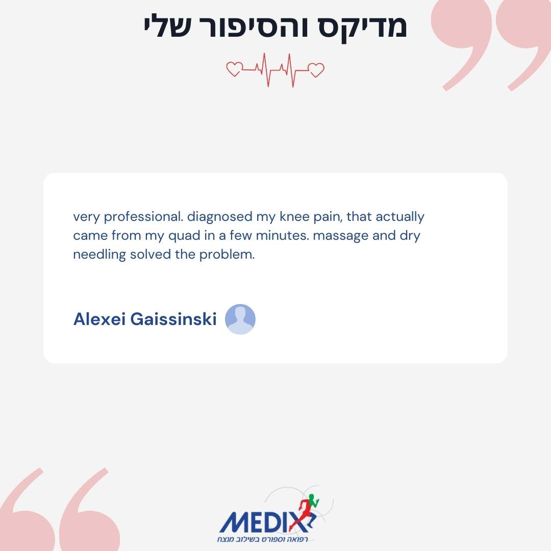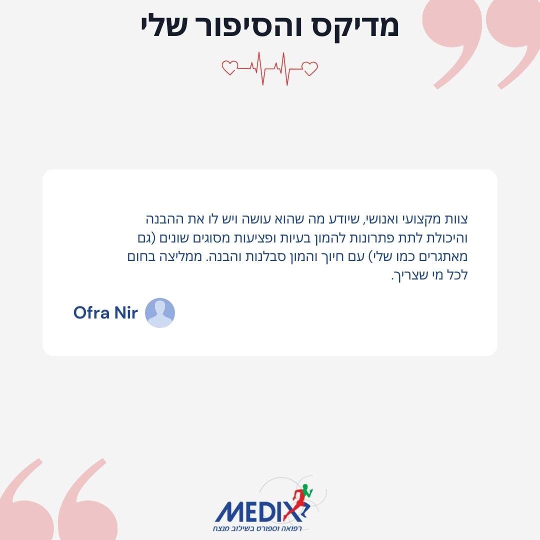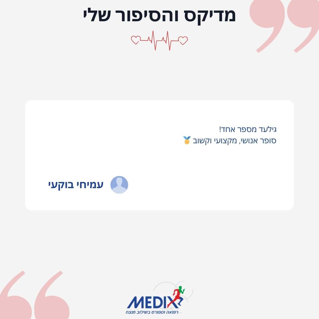 מדיקס מספקת שירותים לא רק לספורטאים מקצועיים, אלא גם לספורטאים חובבים, נוער ובוגרים, ומביאה את אותה רמה גבוהה של טיפול לכל אחד.