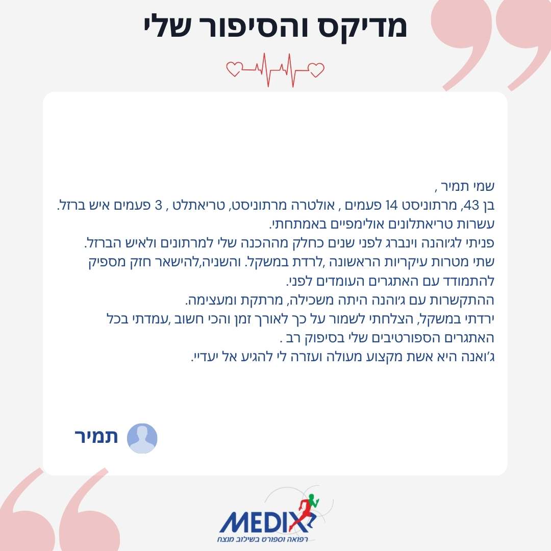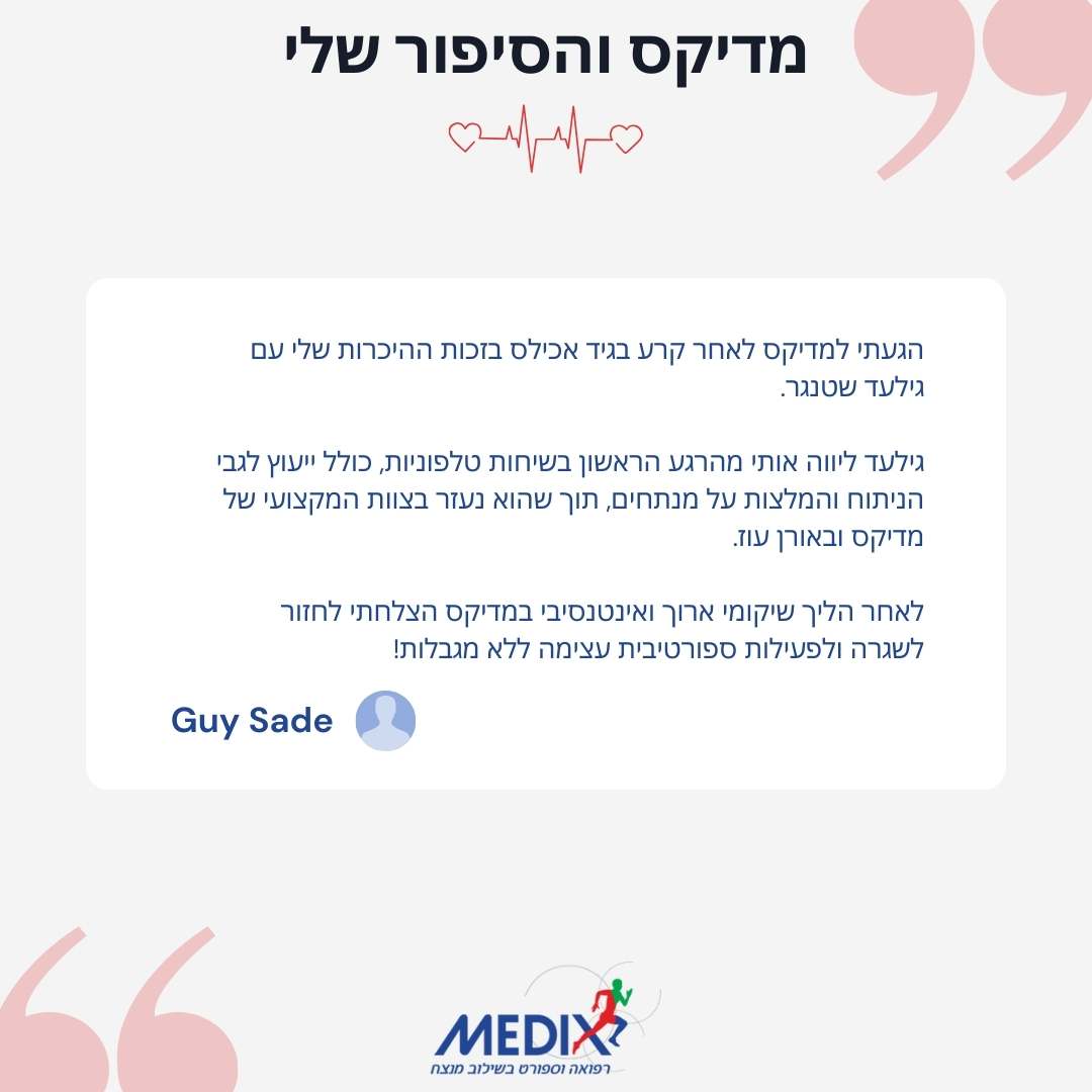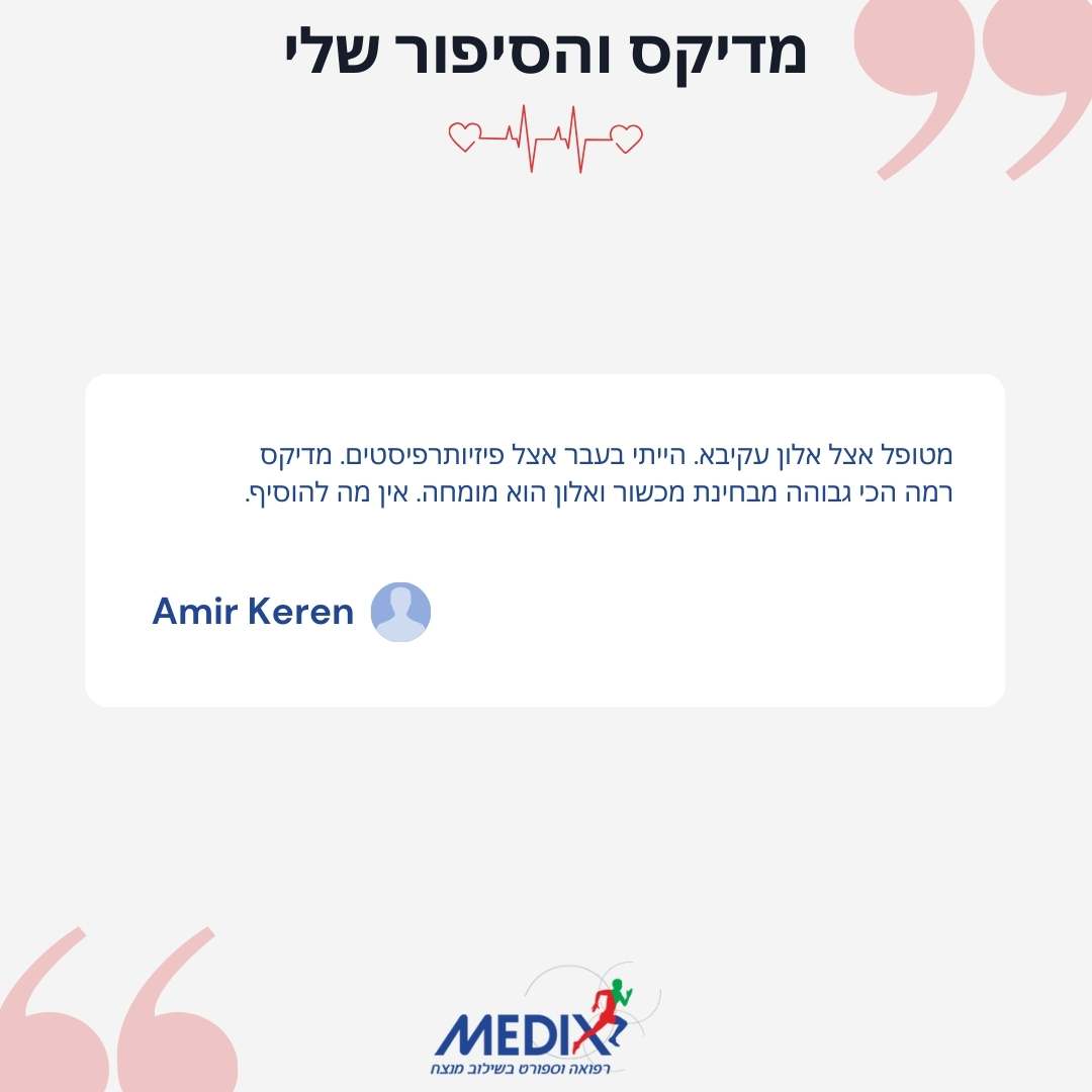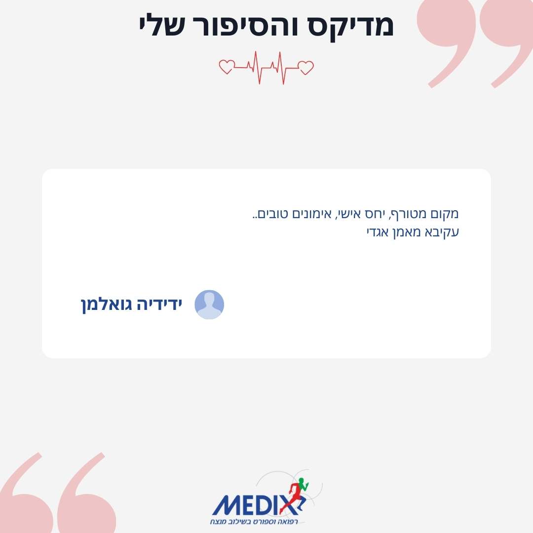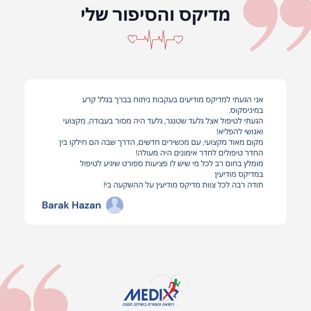 מדיקס מספקת שירותים לא רק לספורטאים מקצועיים, אלא גם לספורטאים חובבים, נוער ובוגרים, ומביאה את אותה רמה גבוהה של טיפול לכל אחד.