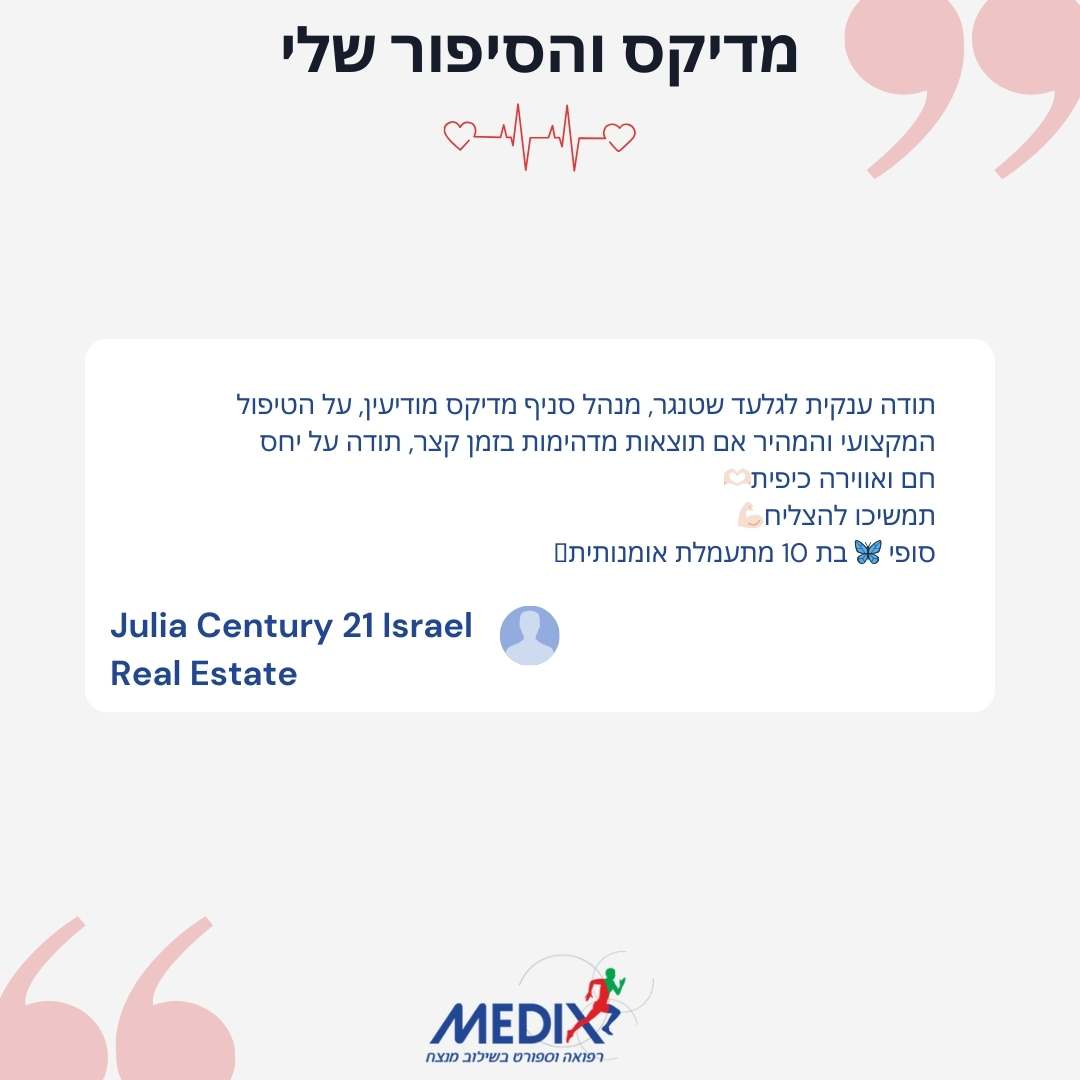 עם מרכזים ברחבי הארץ, מדיקס מציעה נגישות לכל אחד, מכל מקום, לשירותים רפואיים איכותיים ואמינים.